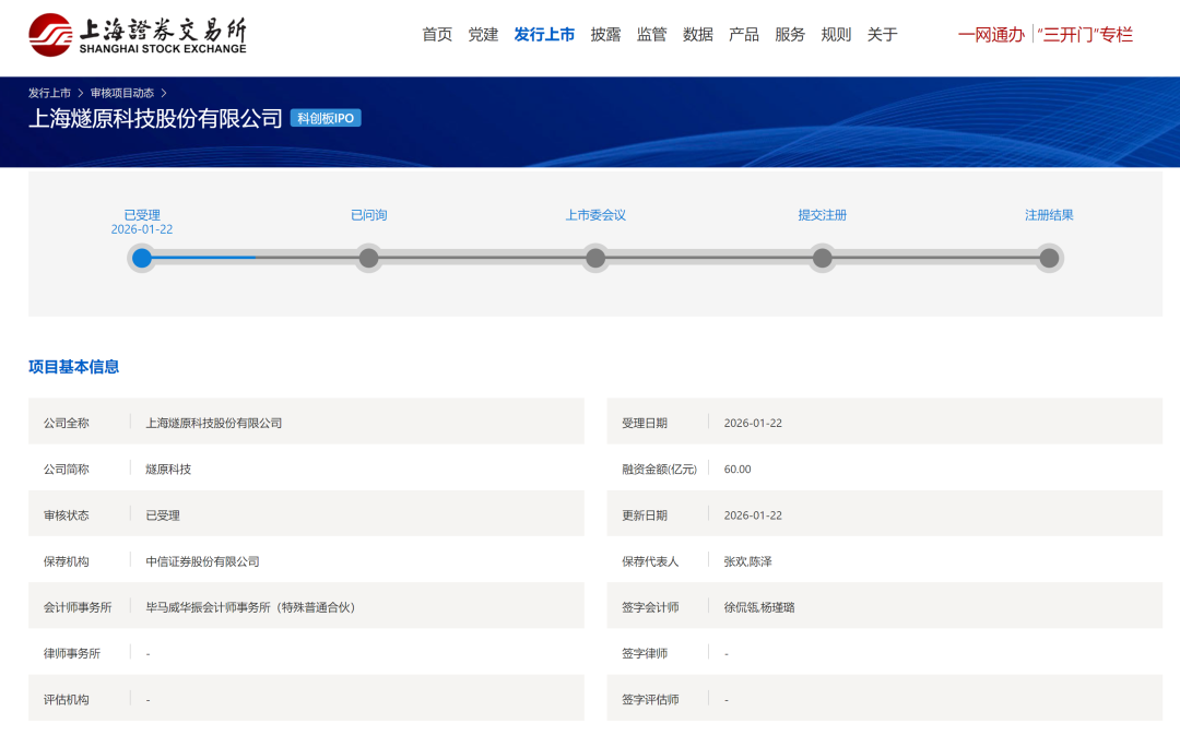 1月22日,据上交所官网,国产GPU厂商燧原科技科创板IPO央求已获受理,这亦然2026年A股首单IPO新受理。